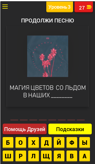 Почти каждый из нас любит слушать музыку, а кто то даже подпевает своим любимым песням :) Попробуй проверить, на сколько хорошо ты знаешь слова популярных песен. В игре будут представлены обложка и некоторые слова из песни, Вам необходимо вставить пропущенные слова. Может легко на первый взгляд? Проверь!
