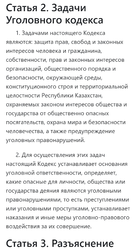 Уголовное законодательство Республики Казахстан состоит из настоящего Уголовного кодекса Республики Казахстан. Иные законы, предусматривающие уголовную ответственность, подлежат применению только после их включения в настоящий Кодекс.