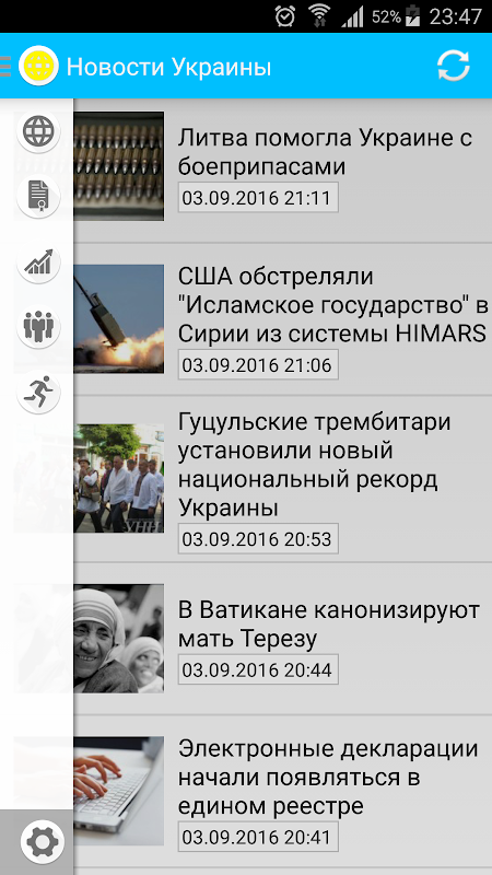- выбор интересующих рубрик (Новости Украины, Политика, Экономика, Общество, Спорт);