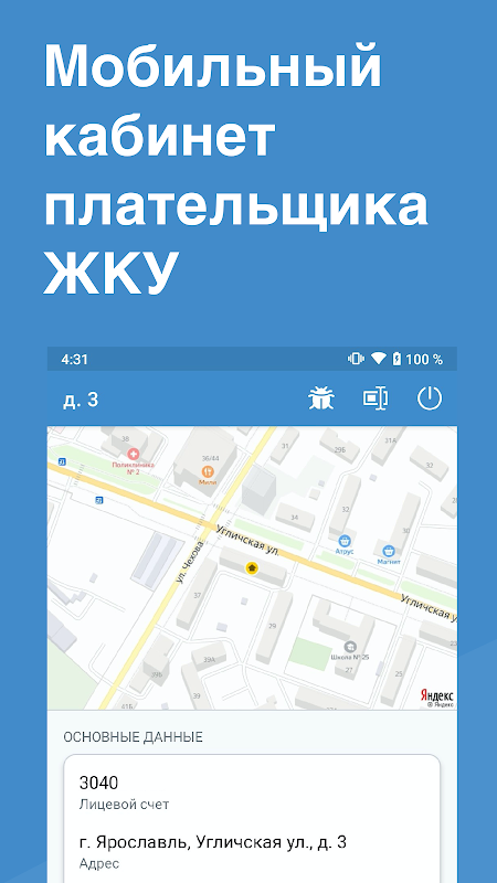 এই অ্যাপ্লিকেশনটি "হাউজিং এবং ইউটিলিটিস পেয়ারের ব্যক্তিগত অ্যাকাউন্ট" এর ওয়েব পরিষেবাটির কার্যকারিতা সম্পূর্ণরূপে নকল করে। প্রধান কার্যকারিতা রয়েছে: