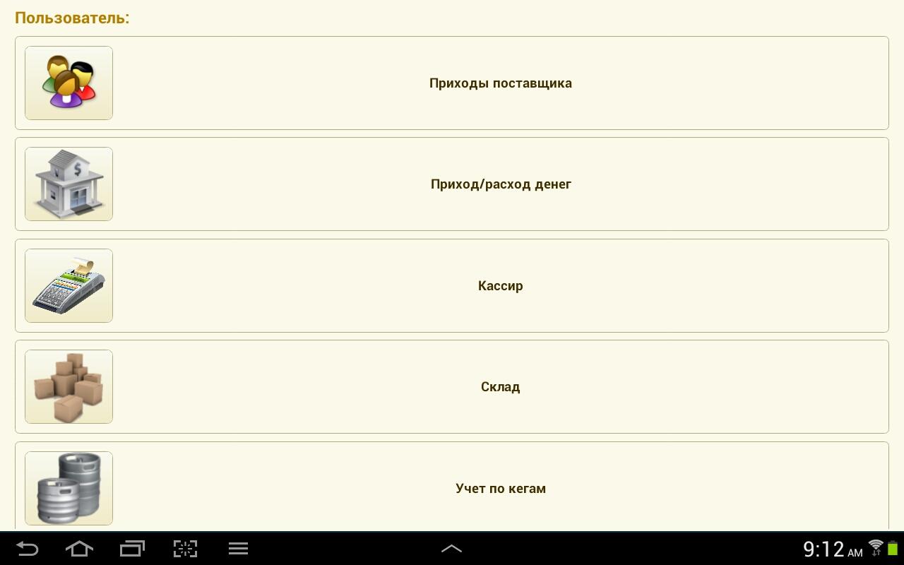 Формирование отчетов по продажам, остатки и движение товаров, отчет по кассе, поступлениям от поставщиков, учет продаж по кегам.