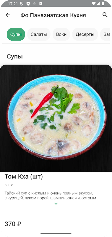 এটি একটি বিস্তৃত পরিসরের খাবারের পাশাপাশি সমস্ত ধরণের সস যা একটি আশ্চর্যজনক স্বাদ রয়েছে। আমাদের অ্যাপ্লিকেশনে, আপনি থাইল্যান্ডের কিছু খাবার চেষ্টা করতে পারেন, এগুলি হল টম ইয়াম এবং টম খা স্যুপ, ভিয়েতনামের কিংবদন্তি ঐতিহ্যবাহী ফো স্যুপ গরুর মাংসের ঝোলের উপর, যা দারুচিনি, মৌরি, ভিয়েতনামের সাথে কমপক্ষে 10 ঘন্টা সিদ্ধ করা হয়। এলাচ পেঁয়াজ, সবুজ শাক, চুন এবং মরিচের সাথে কাটা গরুর মাংস এবং তাজা চালের নুডলসের সাথে পরিবেশন করা হয়।