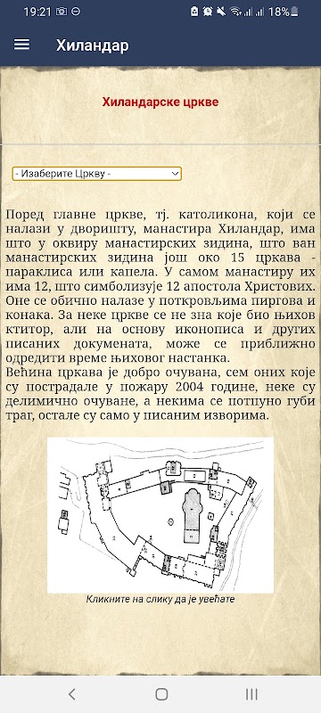 দ্বিতীয় অংশ - যেমন অ্যাপ্লিকেশন নিজেই বলা হয় - হিলান্দার মঠ। এই অংশটি হিলান্দারা মঠের ইতিহাস বর্ণনা করে (সংক্ষিপ্ত), হিলান্দারা মঠের ইতিহাস বহু শতাব্দী ধরে, হিলান্দারা চার্চ, ইত্যাদি...