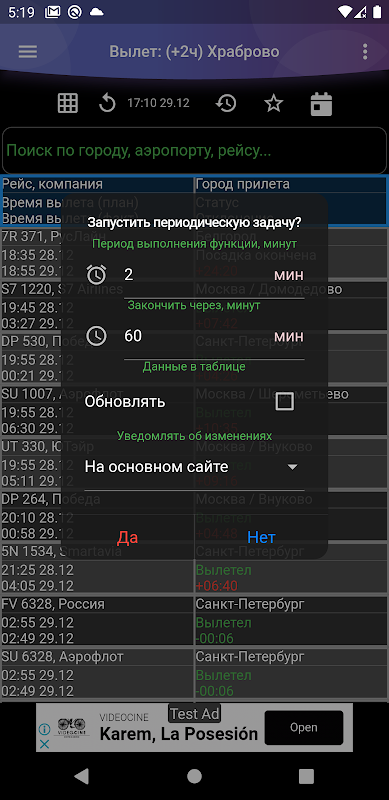 ➤ ফ্লাইট স্থিতি পরিবর্তন সম্পর্কে বিজ্ঞপ্তি (পটভূমিতে সাইটগুলির পর্যায়ক্রমিক পোলিং ব্যবহার করে)