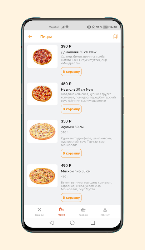 প্রতিষ্ঠান "পিজা পাচক বা রাঁধুনি" থেকে খাদ্য বিতরণ আদেশের জন্য মোবাইল অ্যাপ্লিকেশান