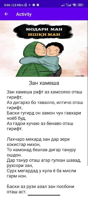 দার বারনোমাই মজকুর শেরু গজলহো দার বড়াই মোদার নাভিস্তা শুদাস্ত।