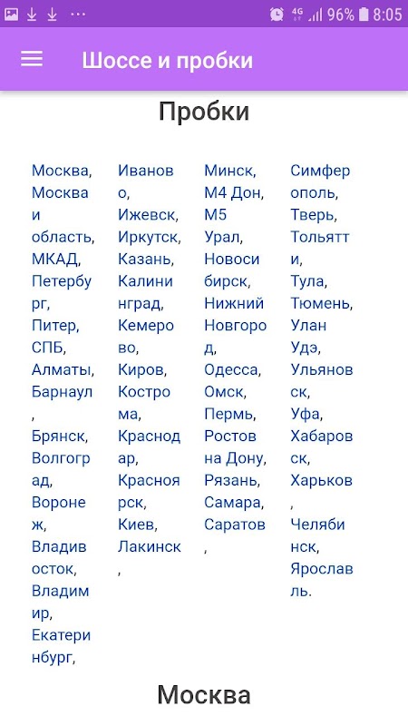 Приложение "Шоссе и пробки" бесплатно показывает наличие пробок в Москве и других городах на карте онлайн.