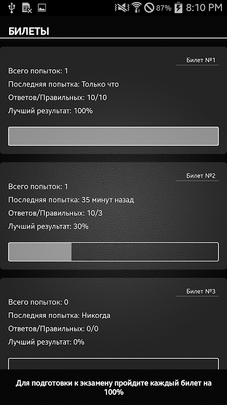 মাত্র কয়েক সপ্তাহের মধ্যে আপনার ট্রাফিক পরীক্ষার জন্য পুরোপুরি প্রস্তুত করার একটি সুবিধাজনক উপায়। অ্যাপ্লিকেশনটিতে 70 টি টিকিটে বিভক্ত 700 টি প্রশ্ন রয়েছে।
