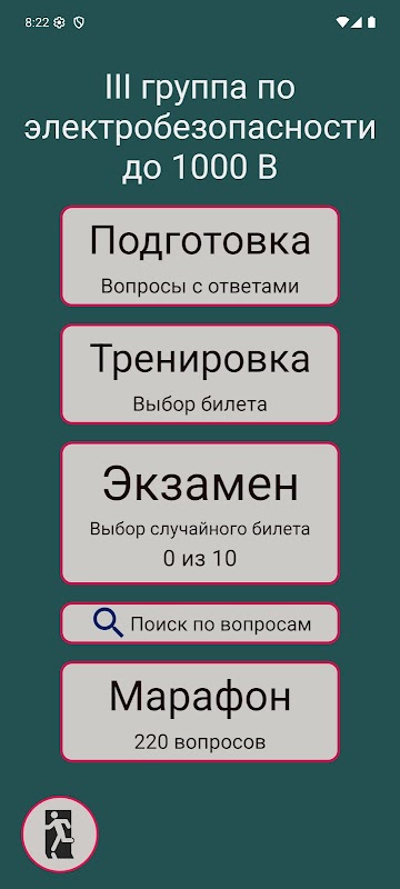 আবেদনটি পরীক্ষার আকারে তৈরি করা হয়েছে (30 টি টিকিট, 10টি প্রশ্ন প্রতিটি)। অ্যাপ্লিকেশনটি আপনাকে 1000 ভোল্ট পর্যন্ত বৈদ্যুতিক নিরাপত্তায় স্বাধীনভাবে কাজ করার অনুমতি পাওয়ার জন্য প্রস্তুত করতে সাহায্য করবে।