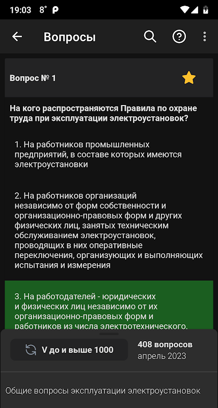 - "নির্বাচিত প্রশ্ন" মোড, যা আপনাকে পছন্দসই প্রশ্নের একটি তালিকা তৈরি করতে এবং তারপর জেনারেট করা তালিকা অনুযায়ী পরীক্ষা পাস করতে দেয়