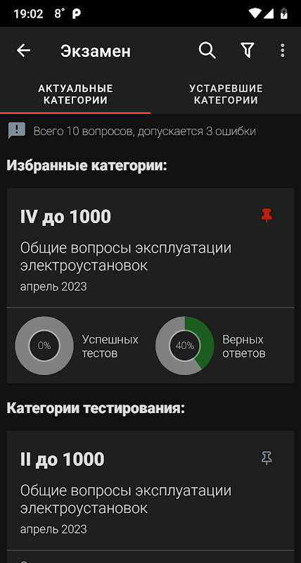 - "ম্যারাথন" মোড, যা আপনাকে নির্বাচিত বিভাগ ব্যবহার করে এবং প্রয়োজনীয় সংখ্যক প্রশ্ন উল্লেখ করে আপনার নিজের পরীক্ষা তৈরি করতে দেয়