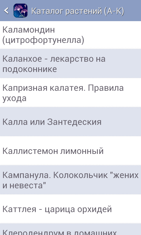 আবেদন ফটো বৃহৎ সংখ্যার কারণে দুই ভাগে ভাগ করা হয়। প্রথম অংশ কে A থেকে গাছপালা একটি ক্যাটালগ রয়েছে, দ্বিতীয় - জেড কে থেকে