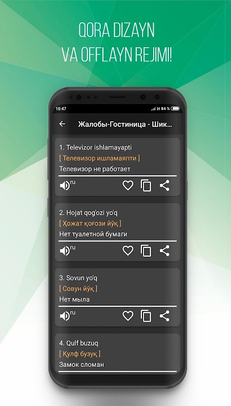 • Вы можете поделиться фразами и копировать в буфер обмена