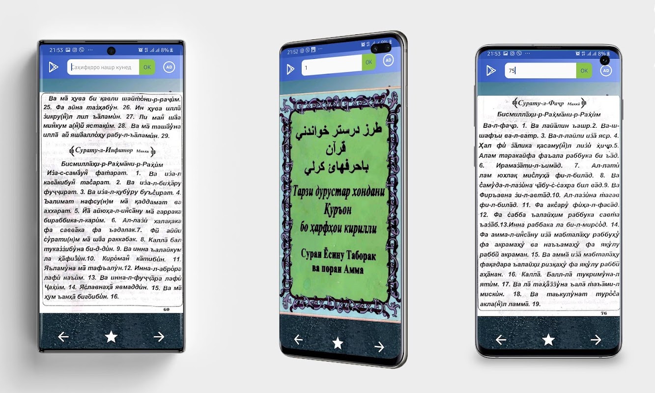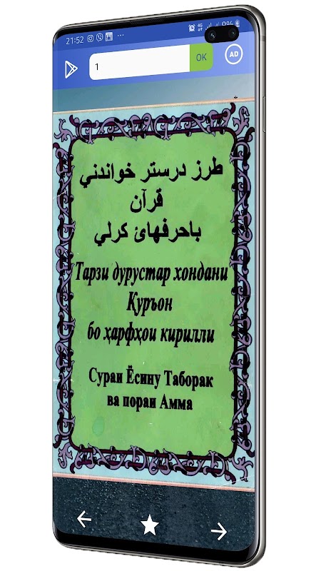 Илова бар дар ин китоб,Қуръонро ба забони тоҷикӣ тарҷума ёфтааст.Тарзи дурустар хондани Қуръон бо ҳарфҳои кирилли Тарзи дуруст тарбия кардани фарзанд Исломӣ китоб Cial Ислом мусалмон намоз ҳадис қурон фарзи айн 100 ҳадис