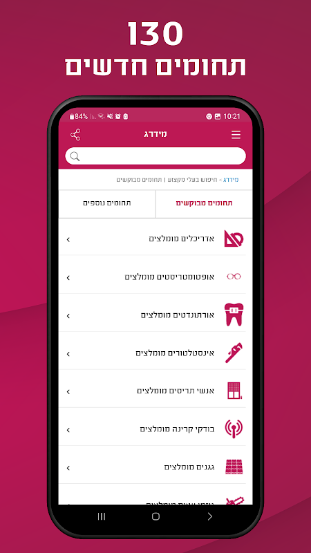 ▌ באפליקציה תמצאו המלצות על התחומים הבאים