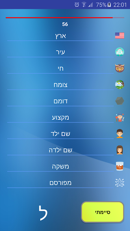 במשחק ארץ עיר יש קטגוריות רבות ולכם יש שליטה מלאה מה להציג מבין 10 אפשרויות,