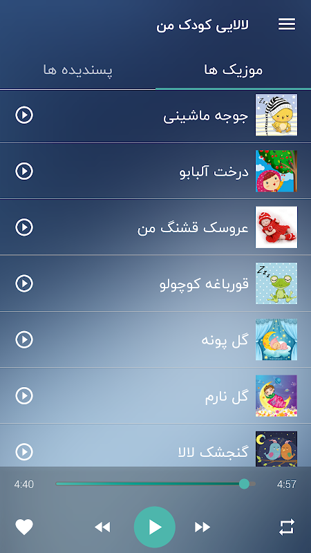 اگر برای خواباندن فرزند خود دچار مشکل هستید، اگر شبها بچه شما گریه میکند، اگر بچه شما بیقراری میکند، اگر برای سرگرم کردن فرزند دلبندتان به دنبال روشی خوب میگردید، چه روشی بهتر از روش نیاکانمان میتوان برای این کار یافت. از دیرباز مادر این سرزمین برای به آرامش رساندن کودکان و سرگرم کردن و خواباندن آنها از لالایی خوانی استفاده میکردند که امروزه به علت مشغلههای پیش آماده این کار کمتر صورت میگیرد. والدین میتوانند با پخش کردن این لالاییها برای فرزندان خود محیطی آرام و دلپذیر برای آنها فراهم کنند و حتی خود آنها از این نرمافزار بهره ببرند تا بتوانند قطعاتی از این لالاییهای آرامشبخش را برای فرزندان خود بخوانند. در این مجموعه سعی شده تا از متنوع نرین قطعات لالایی موجود در کشور استفاده شود. پس برای بهره بردن از این مجموعهای فاخر از لالاییهای موجود در نرمافزار کودک من درنگ نکنید، از این به بعد شبهای زیباتری خواهید داشت. لالایی کودکان هدیه ای برای کودک دلبندمان...