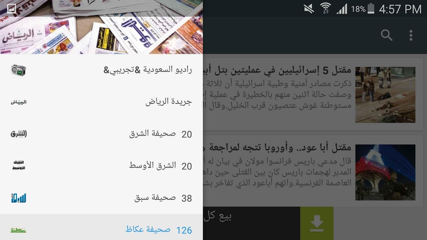 أبرز الصحف في المملكة العربية السعودية السياسية والاقتصادية التي تنقل أخبار المملكة بشكل يومي اضافة للصحف الرياضية كلها تجدوها في هذا التطبيق حيث يتم تحديث الأخبار بشكل تلقائي كما یتیح التطبیق للمستخدم امكانیة نشر الأخبار المفضلة على الفیسبوك والتویتر واتس اب وغيرها من وسائل التواصل الاجتماعي