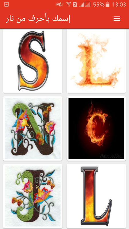 تطبيق إسمك بأحرف من نار 2019 بدون نت الحرف الناري يشمل مجموعة رائعة ومميزة من الاحرف المكتوبة بلون وشكل النار وكذلك كلمات ورسومات نارية وكلمات نارية داخل التطبيق حيث يوجد اكثر من 100 صورة نارية لحرف ناري وكلمة نارية ورسمة نارية بين يديكم في تطبيق إسمك بأحرف من نار 2019 بدون نت . يمكنك تجميع حروف اسمك من نار باستخدام الاحرف النارية داخل التطبيق الناري المميز. هنا في تطبيق إسمك بأحرف من نار 2019 بدون نت يمكنك تحميل صور اسمك بالحرف الناري ورؤية اسمك وهو يلمع كالنار. زين حروف اسمك بالنار 2019 ، واحصل على زخرفة اسمك بشكل رائع وجميل .