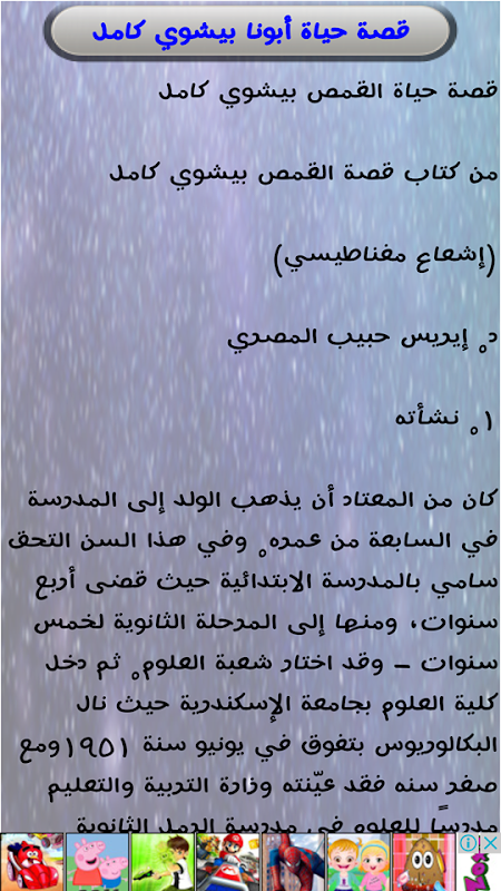 تطبيق ابونا القديس بيشوي كامل يحتوي علي 6 صفحات كالاتي :