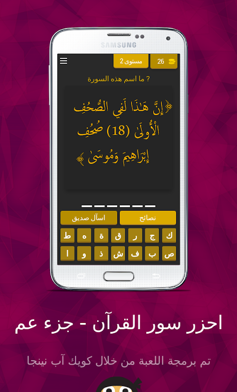 احزر سور القرآن - جزء عم لعبة رمضانية مسلية تمكنك من مراجعة جزء عم بطريقة لعبة أسئلة رائعة ومميزة بدون إنترنت.