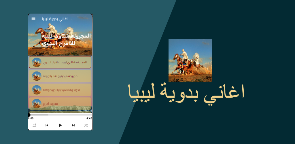 বেদুইন লিবিয়ার গান - বেদুইন লিবিয়ানের অ্যাপ্লিকেশনে আমরা আপনার কাছে সবচেয়ে সুন্দর এবং সবচেয়ে অনুরোধ করা গান এবং সবচেয়ে সুন্দর সমাধান উপস্থাপন করছি, হ্যাঁ, আমরা আপনাকে লিবিয়ার বেদুইন গান সরবরাহ করেছি - বেদুইন লিবিয়ান যা আপনি শুনতে পছন্দ করেন। উচ্চ-মানের শব্দ, নির্ভুলতা এবং স্পষ্টতা কোনো বিকৃতি বা ত্রুটি ছাড়াই, কারণ এটি একটি সহজ আধুনিক ডিজাইনে উপলব্ধ ব্যবহার করুন, চালান এবং থামান, এবং আপনি এটিকে বিরতি দিতে এবং শুনতে ফিরে যেতে পারেন এবং আপনি এটি আপনার বন্ধুদের সাথে শেয়ার করতে পারেন উদ্যম এবং আনন্দ। বেদুইন লিবিয়ার গান শুনুন - বেদুইন লিবিয়ান, এবং অ্যাপ্লিকেশনটি ডাউনলোড করুন