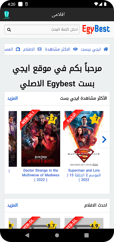 আপনি অ্যাপ্লিকেশনের মাধ্যমে সিনেমা এবং গান দেখতে এবং ডাউনলোড করার জন্য অনেক সুপরিচিত সাইট অ্যাক্সেস করতে পারেন, যেমন EgyBest, Movies Land, Arab Lieutenant, Watch4You, Movies4U, Akwam, Arab Seed, Sima Abdo, My