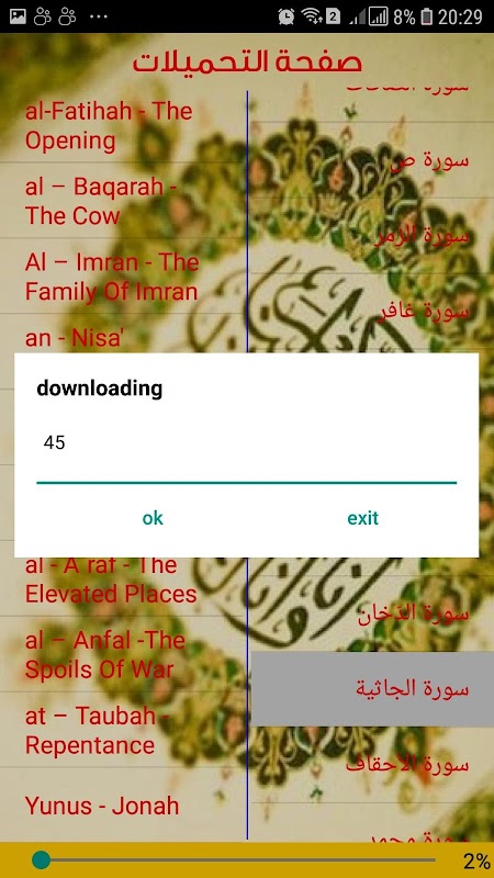 ব্যবহারকারী এমপি 3 ফরম্যাটে পবিত্র কুরআন ডাউনলোড করতে পারেন