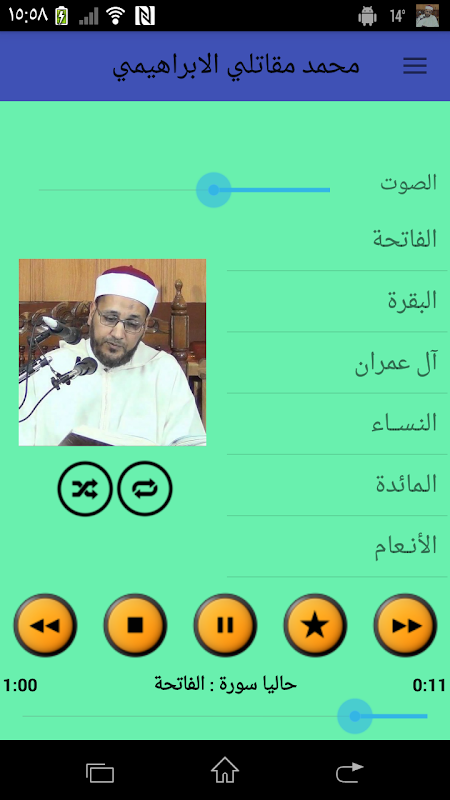 Listening application of the full Quran voice Sheikh Mohammed Ibrahimi fighters Warsh from Nafi