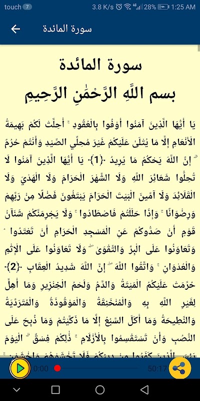 (পরবর্তী সূরা) এবং (আগের সূরা) বোতাম টিপে, আপনি যে সূরাটি শুনছেন তার আগের সূরাগুলির পাশাপাশি নিম্নলিখিত সূরাগুলি শুনতে পারেন৷ প্রোগ্রামটি আপনাকে প্রতিটি সূরার সময়কাল দেখায় যাতে আপনি এই সম্পর্কে সচেতন।