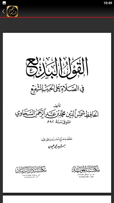 আল-সাখাভির প্রিয় মধ্যস্থতাকারীর উপর প্রার্থনায় বিস্ময়কর উক্তিটি একটি অ্যান্ড্রয়েড অ্যাপ্লিকেশন যাতে মহান নবীর জীবনী এবং নবী (সাঃ) এর উপর প্রার্থনা এবং সূত্রের ক্ষেত্রে সমস্ত মুসলমানদের জন্য একটি গুরুত্বপূর্ণ এবং দরকারী বই রয়েছে। লিখিত এবং অডিও নবীর উপর প্রার্থনা