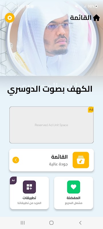 Sheikh শেখ আল-দোসারির কণ্ঠের সাথে একটি খুব বিশেষ অ্যাপ্লিকেশন, সুরাত আল-কাহফের জন্য উচ্চমানের আবৃত্তি, নেট ছাড়া সম্পূর্ণ