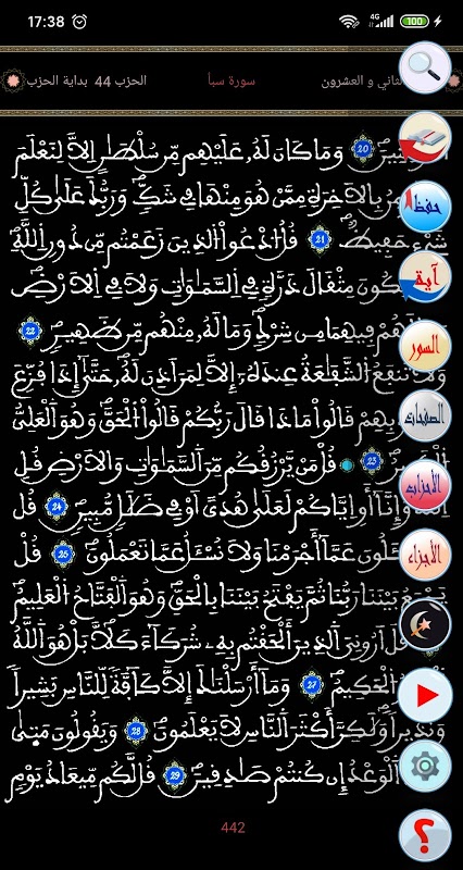 এই পবিত্র কোরআনটি নাফির কর্তৃত্বে ওয়ার্শের বর্ণনা অনুসারে লেখা হয়েছে, ইন্টারনেট সংযোগ ছাড়াই সম্পূর্ণ।