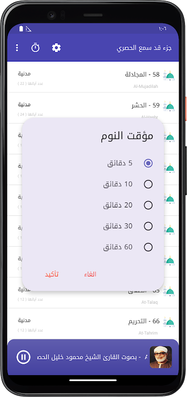 তেলাওয়াতকারী মাহমুদ খলিল আল-হোসারির কণ্ঠে নোবেল কোরআনের আবেদন আপনাকে আপনার ফোন বা ডিভাইসে শোনা একটি অংশ শুনতে দেয়।