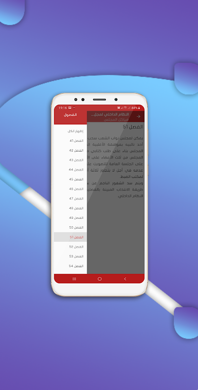 إطلع على محتوى النظام الداخلي لمجلس نواب الشعب الذي تمت المصادقة عليه من قبل مجلس نواب الشعب في جلسته العامة المنعقدة بتاريخ 2 فيفري 2015 ووقع نشره بالرائد الرسمي للجمهورية التونسية عدد 16 لسنة 2015 المؤرخ في 24 فيفري 2015.، حيث يهدف التطبيق إلى تيسير النفاذ إلى محتوى النظام الداخلي لمجلس نواب الشعب من قبل المواطنين ونواب الشعب والجمعيات والأحزاب حيث يمكن من خلاله الإطلاع على كامل نصوص فصوله بصفة آنية ومسترسلة أو عن طريق البحث عن فصل محدد بالإضافة إلى إمكانية مشاركة محتوى الفصول مع الآخرين عبر الإرساليات القصيرة، البريد الإلكتروني أو مواقع التواصل الإجتماعي.