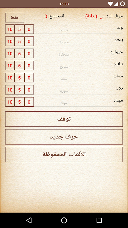 لعبة (انسان حيوان نبات جماد بلاد) المشهورة و المسلية. لعبة تساعد على تطوير المهارات و تنمية المعلومات لدى اللاعبين بالإضافة إلى أنها تساعد في سرعة البديهة. لعبت لأجيال على الورق والآن نقدم لكم إصدار الأندرويد منها.