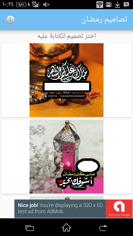 يوفر لك التطبيق مجموعة من التصاميم الجاهزة للكتابة عليها بسهولة , كما يمكنك حفظها ومشاركتها مع اصدقائك , بمناسبة شهر المبارك .