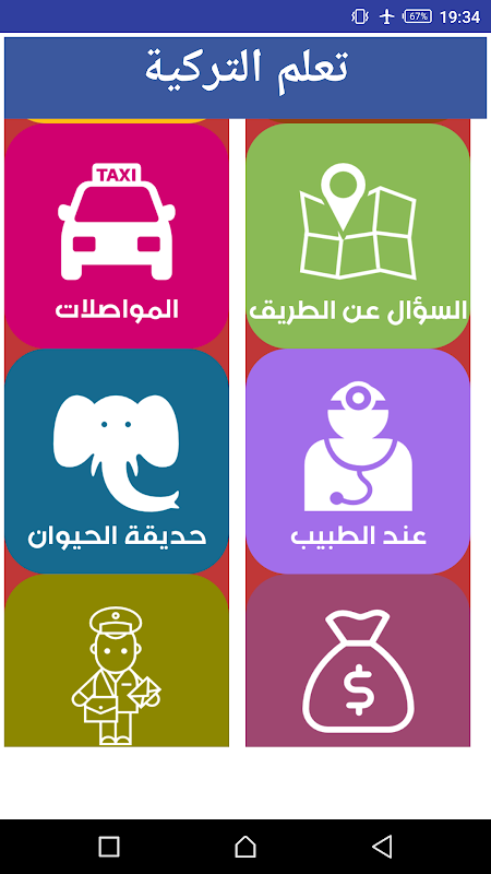 تعلمك التركية سيكون سهل جدا للغاية مع هذا التطبيق الذي يحتوي 2000 جملة وعبارة للحديث بالتركية في مختلف الحالات والأماكن الضرورية بالصوت والصورة مع طريقة النطق للمبتدئين (في الفندق، في الشارع، في المنزل،في البنك،في التاكسي،والكثير الكثير..).