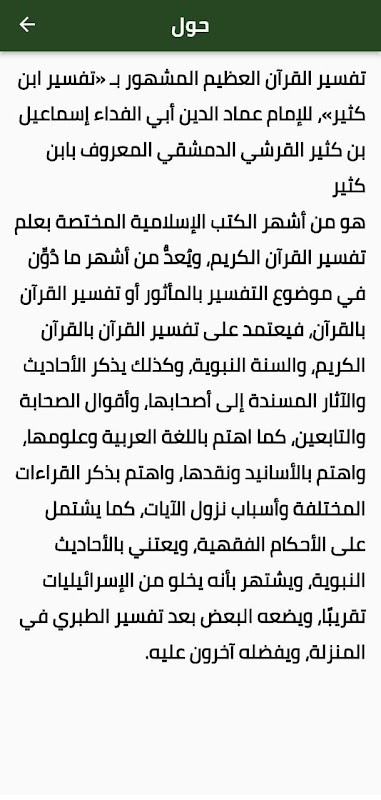 তাফসির ইবনে কাথির পিডিএফ একটি দুর্দান্ত অ্যান্ড্রয়েড অ্যাপ্লিকেশন যাতে পিডিএফ ব্যাখ্যার ক্ষেত্রে সমস্ত আরব এবং মুসলমানদের জন্য একটি গুরুত্বপূর্ণ এবং দরকারী বই রয়েছে।