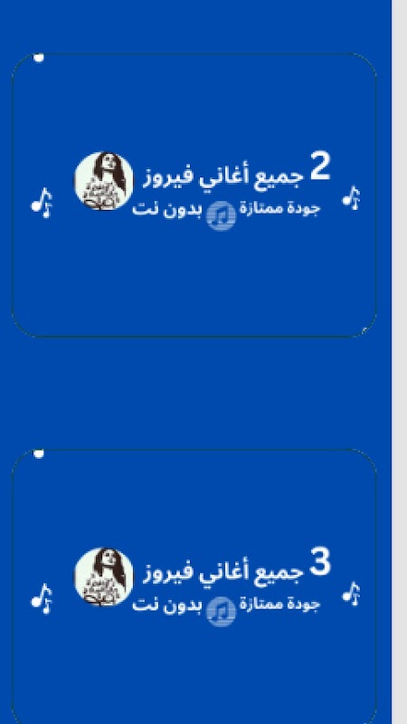 احصل على تجربة موسيقية استثنائية مع تطبيق 'جميع أغاني فيروز بدون نت'! نقدم لك فرصة فريدة للاستمتاع بأجمل أغاني الفنانة فيروز في أي وقت وبدون الحاجة إلى اتصال بالإنترنت.