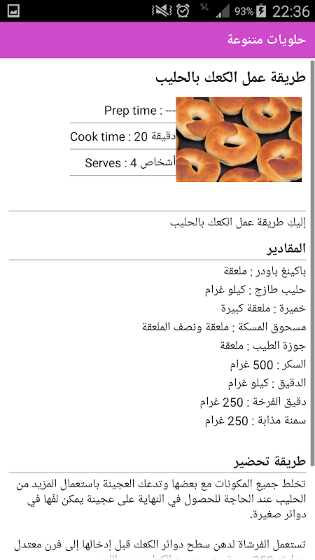 تطبيق حلويات متنوعة مجاني يحتوي على مجموعة من فيديوهات تعلمية و صفات لتحضير حلويات متنوعة