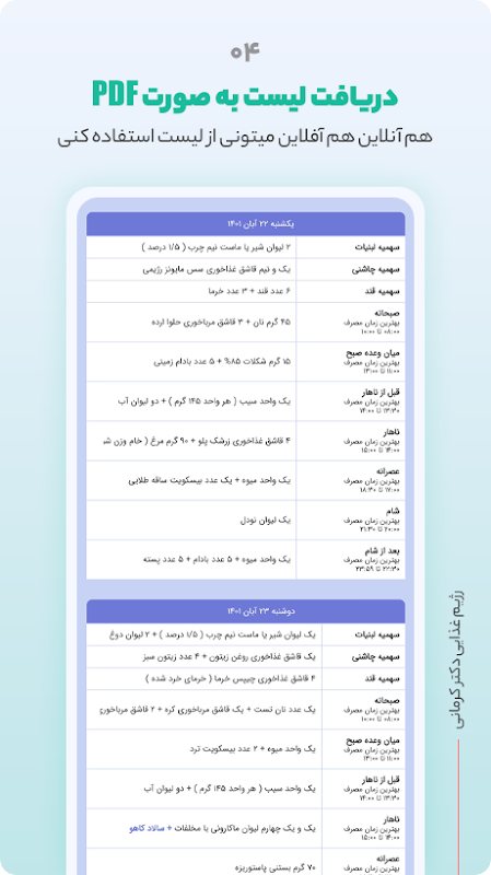 رژیم آنلاین دکتر کرمانی 4.7.5