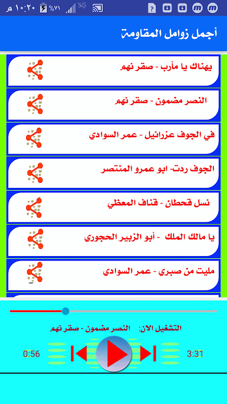 - শীলা আহমেদ আলী জাবের: এই অ্যাপ্লিকেশনটিতে কণ্ঠশিল্পী আহমেদ আলী জাবরের সবচেয়ে সুন্দর জামিল এবং শীলা রয়েছে।