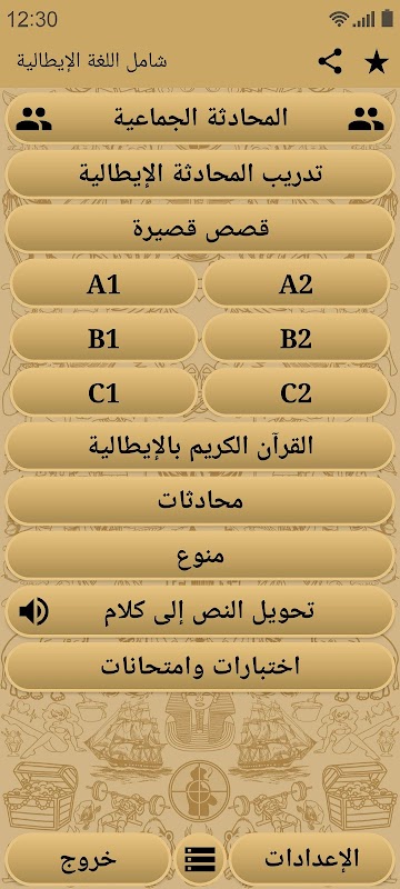 تعلم اللغة الإيطالية بجميع مستوياتها ابتداءً بالمستوى A1 وانتهاءً بالمستوى C2 مروراً بالمستويات A2, B1, B2, C1 مع شرح كامل ومميز لجميع قواعد اللغة الإيطالية.