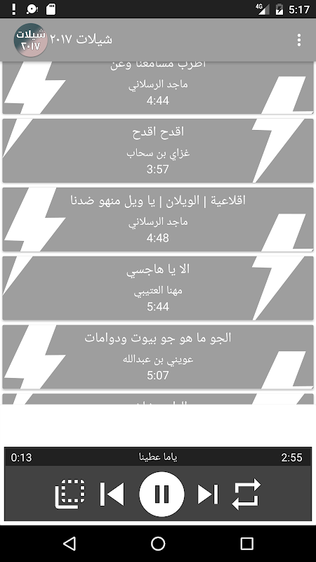 تطبيق شيلات ٢٠١٧ تم تجميع اجمل الشيلات الاكثر استماعاً لعام ٢٠١٧ بعنايه في تطبيق واحد