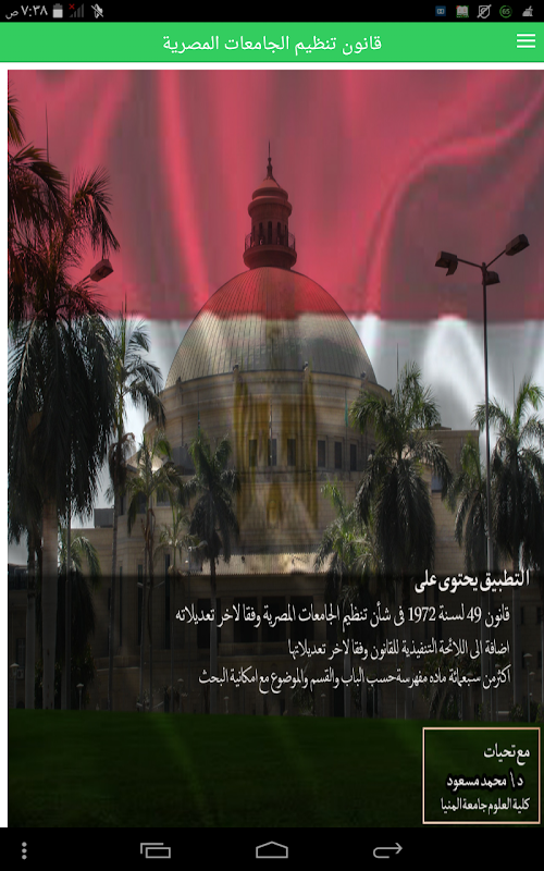 ملحوظة: هذا التطبيق هو التطبيق الثانى فى الموسوعة القانونية و قد سبقه تطبيق قانون العقوبات المصرى على الرابط التالى: