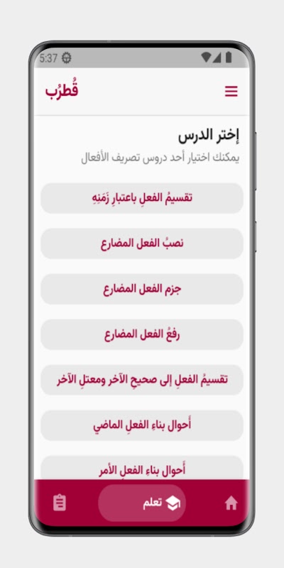 কাতর্ব সহজে এবং সহজে আরবি ক্রিয়াগুলিকে একত্রিত করে এবং ব্যবহারকারীকে তার তথ্য শিখতে এবং সংশোধন করতে সহায়তা করে।