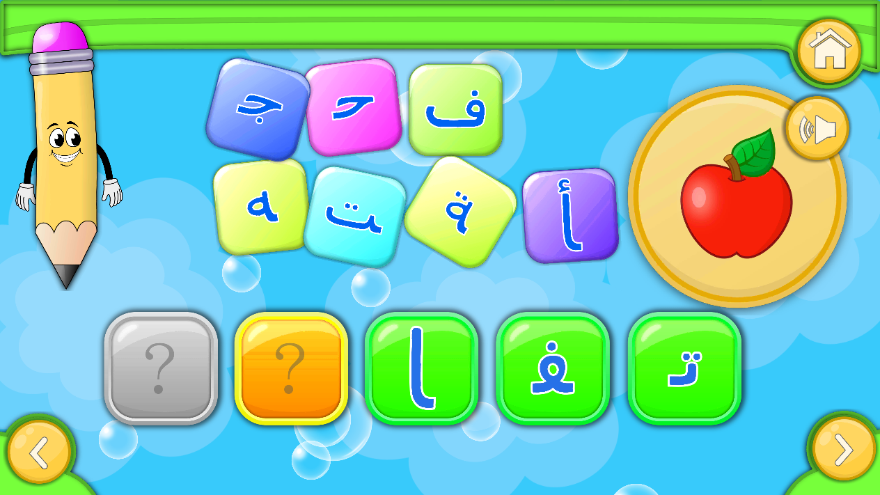 শব্দ এবং অক্ষর বাচ্চাদের চিঠি, শব্দ এবং আরবি সংখ্যা শেখার জন্য একটি শিক্ষামূলক অ্যাপ্লিকেশন।