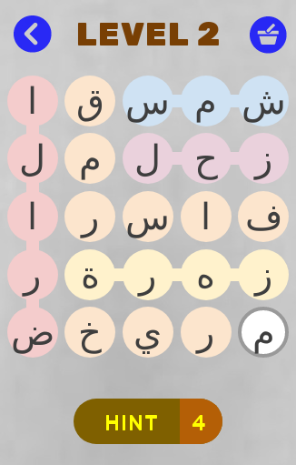 طريقة لعب العبة عن طريق ربط الحروف مع بعضها البعض وتوصيلها لتجمع الكلمة الصحبيحة., فيها اكتر من 20 مرحلة .!
