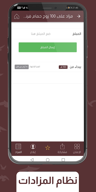 নিলাম এবং সব ধরণের কবুতর, মুরগী, পাখি, বাজপাখী, বন্য পাখি এবং হাঁস-মুরগির জন্য অফার